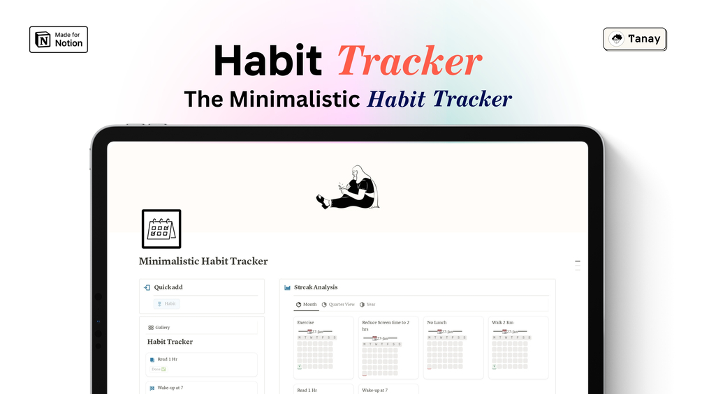 This Notion-powered Habit Tracker is your sleek, powerful system to build consistency, track streaks, and visualize progress โ all in one minimalist workspace.